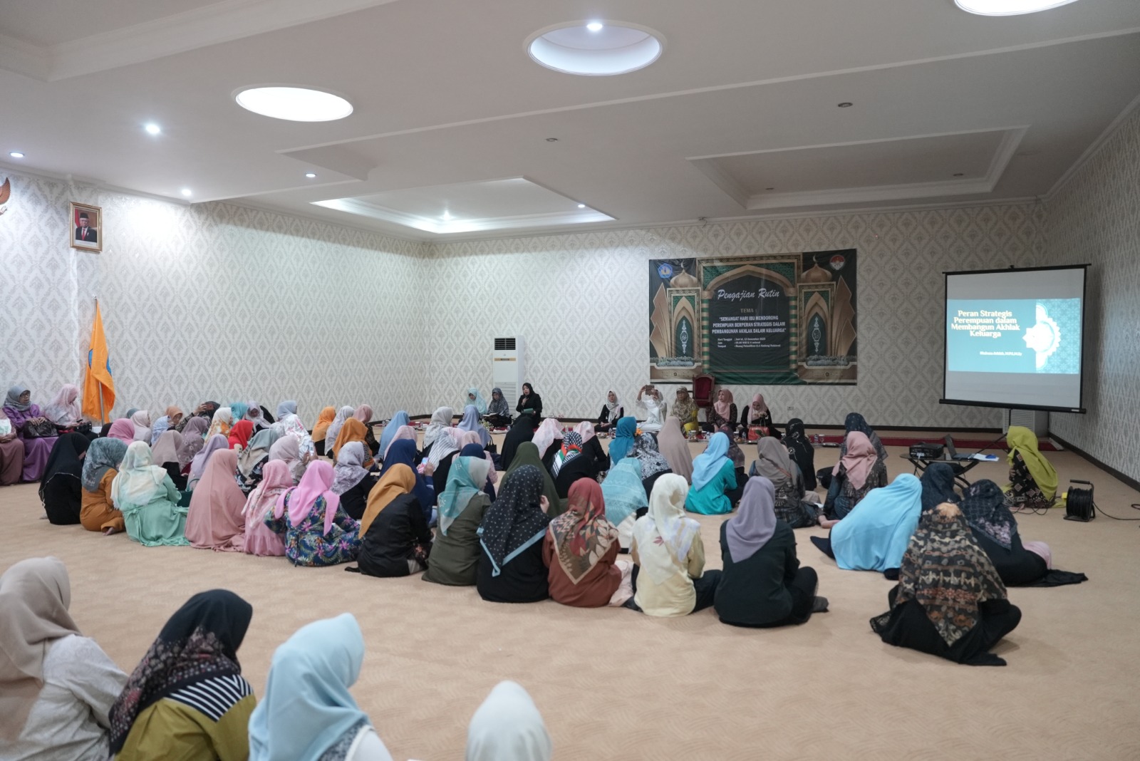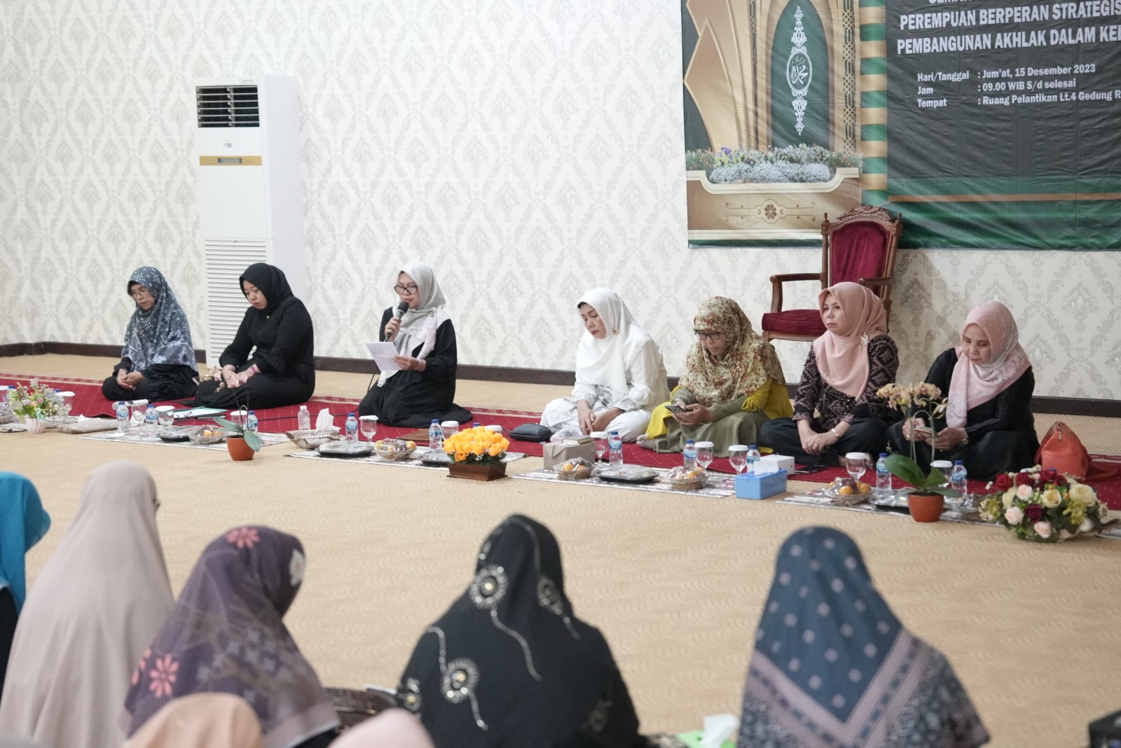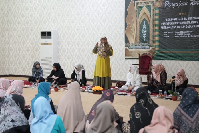 Pengajian digelar di ruang pelantikan lantai empat gedung Rektorat, Jumat, 15 Desember 2023, dengan menghadirkan Ustazah Khairuna Arfalah, M.Pd., M.Si., sebagai penceramah.