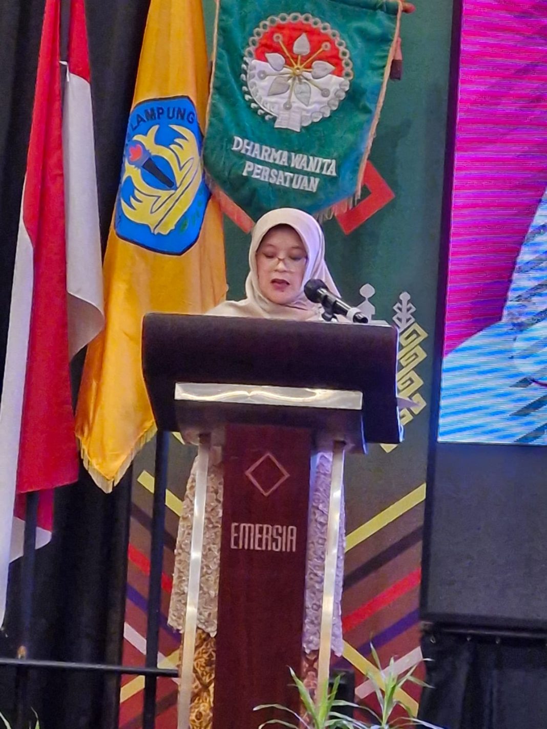 Peringatan Hari Kartini ke-145 yang berlangsung di Hotel Emersia, Bandar Lampung, ini dibuka dengan menyanyikan lagu kebangsaan dan mars Darma wanita, dilanjutkan dengan laporan dari Ketua Pelaksana Diah Kusumawardhani Fakih.