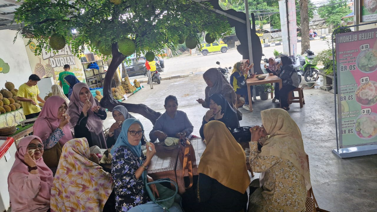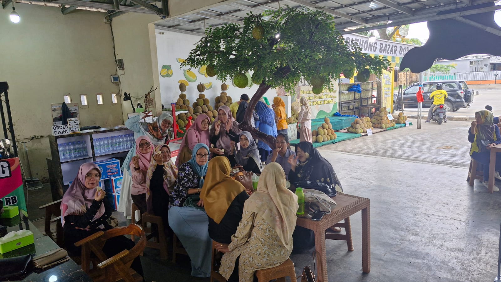 Setelah puas berkeliling dan berbelanja di pabrik tahu, rombongan DW Fakultas Teknik Unila melanjutkan perjalanan ke Blehong Durian Sukarame. Agenda ini menjadi kesempatan bagi para anggota untuk menikmati durian bersama sebelum memasuki bulan puasa. Blehong Durian dikenal sebagai salah satu tempat favorit pecinta durian di Bandar Lampung dengan berbagai pilihan durian lokal berkualitas.