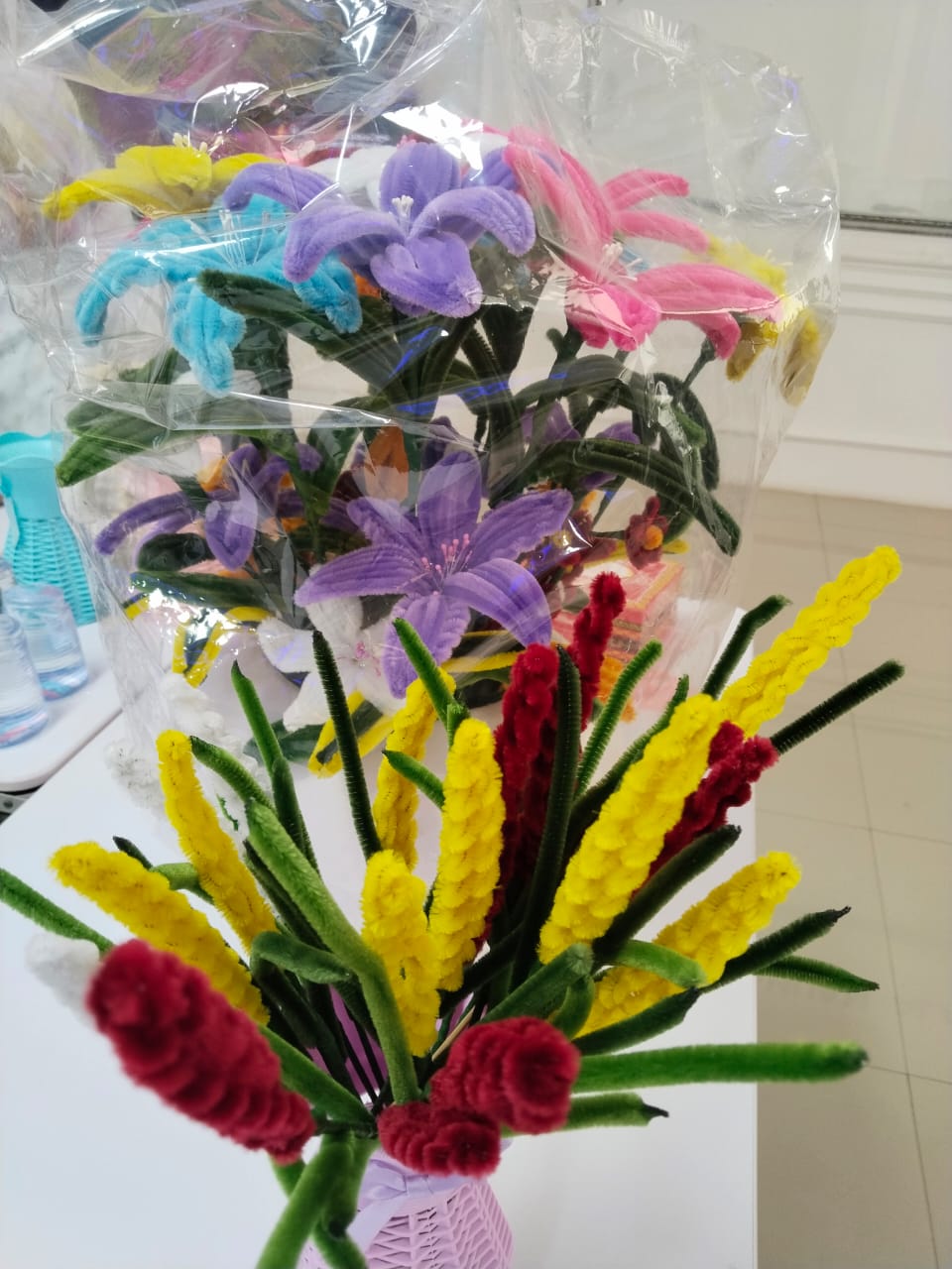 Kegiatan dilanjutkan dengan penyerahan bunga hasil karya anggota pada pertemuan bulan April, serta tutorial merangkai bunga lavender dan lily kecil yang dipandu dengan semangat dan kekompakan.