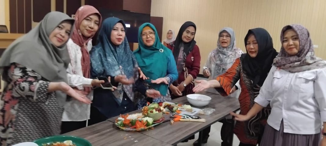 Bersama dua narasumber penuh inspirasi, Ibu Mira Desningsih Amrizal dan Ibu Sugiarti Syamsul Huda, para peserta belajar seni menghias makanan melalui keterampilan membuat garnish dari buah dan sayuran. Di tangan-tangan terampil itu, wortel berubah jadi bunga, tomat menjelma mawar, dan semangka pun disulap menjadi karya seni kecil yang memanjakan mata.