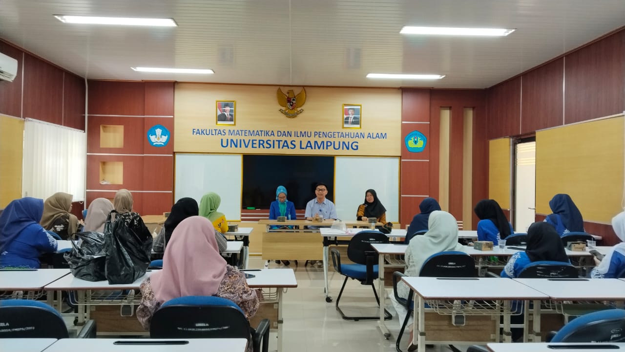 Bandar Lampung 18 desember 2025 – Dharma Wanita Persatuan (DWP) Unsur Pelaksana Fakultas Matematika dan Ilmu Pengetahuan Alam (FMIPA) Universitas Lampung (Unila) menggelar pertemuan rutin bulanan pada Kamis, 18 Desember 2025. Kegiatan yang berlangsung mulai pukul 09.30 WIB hingga 11.00 WIB, bertempat di Ruang Seminar Dekanat Lantai 2 FMIPA Universitas Lampung dan diikuti oleh pengurus serta anggota DWP Unsur Pelaksana FMIPA.