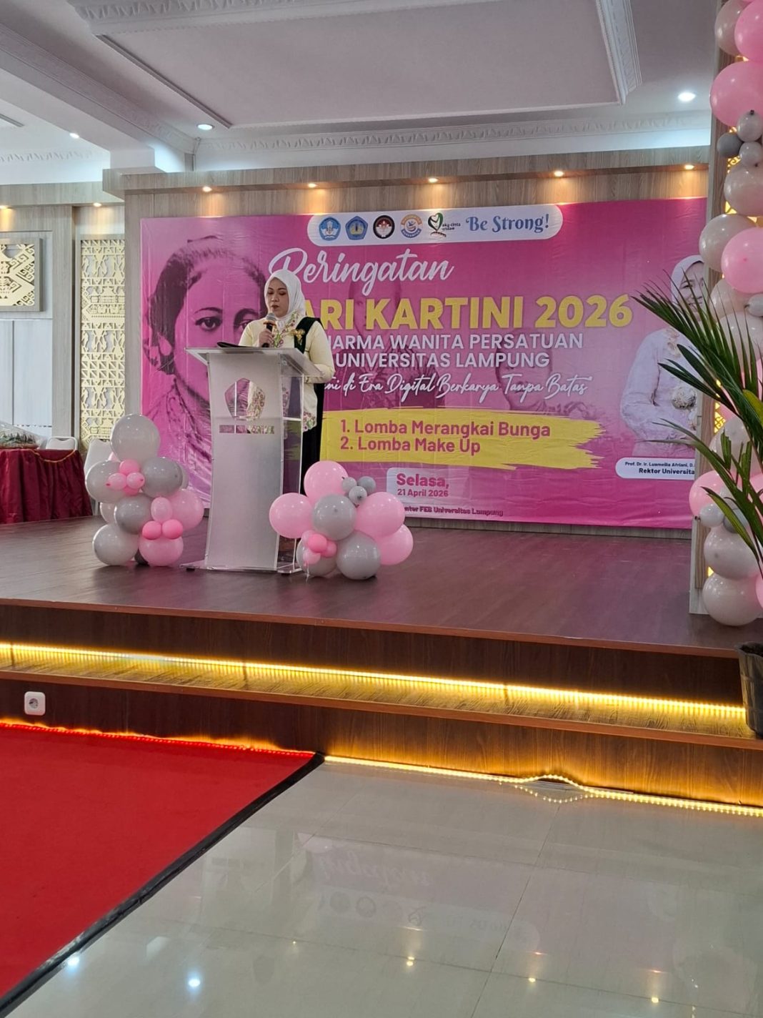 Bandar Lampung, selasa 21 April 2026 – Dalam rangka memperingati Hari Kartini, Dharma Wanita Persatuan (DWP) Unit Universitas Lampung menggelar kegiatan bertema “Kartini di Era Digital, Berkarya Tanpa Batas” pada Selasa, 21 April 2026. Kegiatan ini dilaksanakan di Student Center Fakultas Ekonomi dan Bisnis (FEB) dan berlangsung dengan penuh semangat serta kebersamaan.